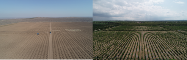 Before (left) and after(right): The planting of 55.67 ha of mixed coniferous and broadleaf trees on semi-arid land.