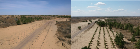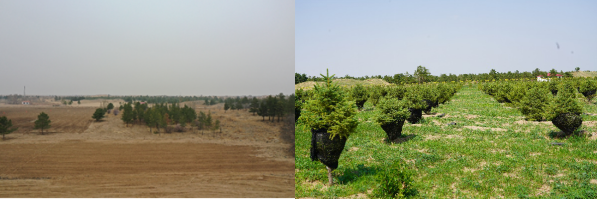 Before (left) and after (right): Planting of Mongolian pine combined with Siberian elm