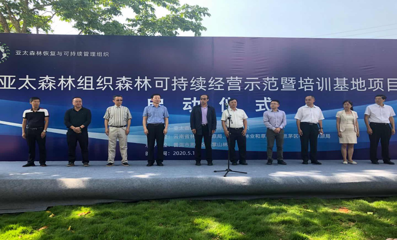 The official launching ceremony of the “Demonstration of Sustainable Forest Management and Establishment of APFNet Training Base Project” was held in Wanzhangshan Forest Farm, Pu’er City, Yunnan Province on 15 May 2020. More than 60 representatives from APFNet, the Yunnan Forestry and Grassland Administration, the local Pu’er and Simao governments, as well as the Pu’er and Simao Forestry and Grassland Bureau attended the event.