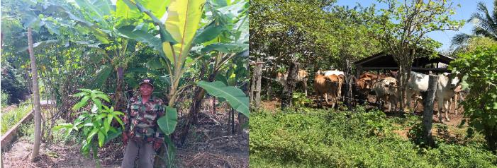 Mr Kim Chab at his agroforestry farm and backyard cow-raising site in the community forest.