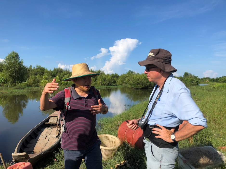 Dr Sang Phan discusses different options to combine mangrove restoration and aquaculture with evaluator Mr Jim Enright.