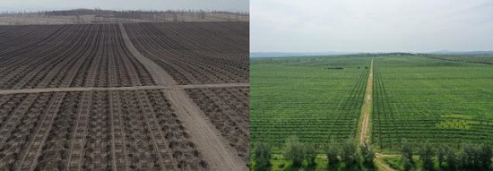 Before (left) and after (right) planting of mixed coniferous and broadleaved trees; Photo: Sanyijing Forest Farm