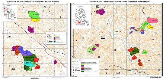 Fig.1 Map of Demonstration Plots in Tan Son and Thanh Son Districts, Phu Tho Province
