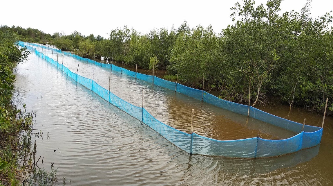 This model was achieved with the support of the University of Queensland, working in close cooperation with local communities. Fig. 2 shows the improved shrimp aquaculture in mangroves. The greatest challenge was the distance of the designated aquaculture ponds within the community forest to the owners, as increasing distance exponentially increased management costs.