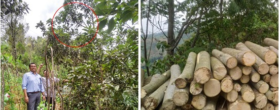Fig.5 : Left: An avocado tree planted in early 2018 is already bearing fruit; Right: Harvest of Albizia trees planted in 2018