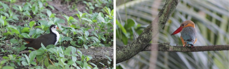 Fig.6 Examples of bird species found during the surveys(Left: White-breasted waterhen; Right: Stork-billed Kingfisher)