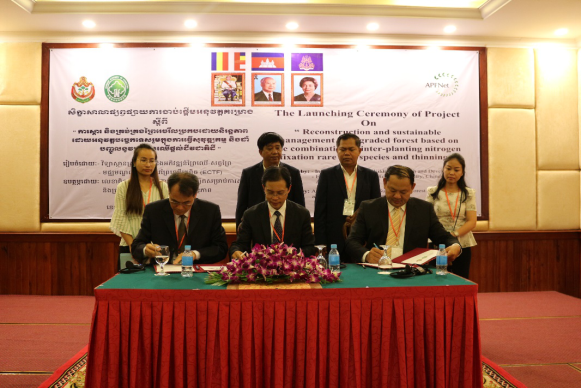 在2018年12月20日,亚太森林恢复与可持续管理组织与中国林业科学院热带林业实验中心(ECTF),柬埔寨林业局森林与野生动物研究与发展研究所(IRD)在暹粒省合作展开了“间种固氮稀有树种与疏伐相结合的退化森林重建与可持续发展管理”项目。这是由APFNet向柬埔寨提供资金的第四个项目,旨在恢复柬埔寨退化的社区森林(CFs)。