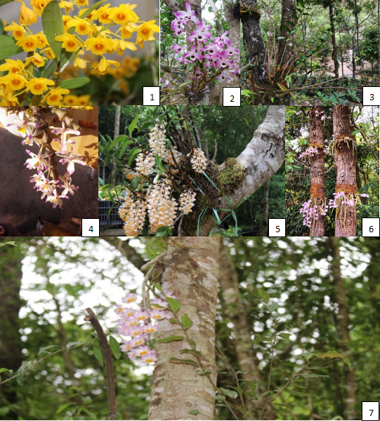 1、鼓槌石斛 2、金钗石斛 3、叠鞘石斛 4、肿节石斛 5、球花石斛 6、玫瑰石斛 7、报春石斛