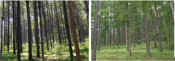 图表3 图为通过4-5次抚育,调整落叶松密度至每亩60株,培育中大径级用材林。(摄影 马成功/旺业甸林场)