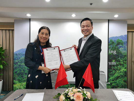 中国云南省林业和草原科学院院长钟明川女士与越南林业科学研究院院长Vo Dai Hai先生签署合作协议(孙睿/摄)