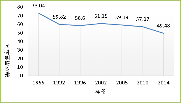 图1 1965年至2014年柬埔寨森林覆盖率变化