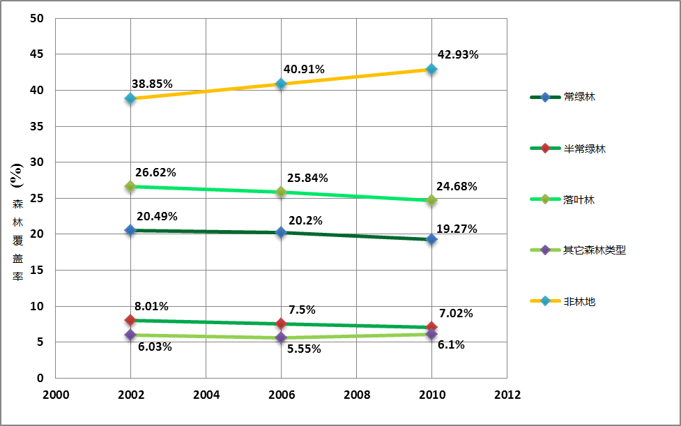 | 5 | 非林地 | 7,056,383 | 38.85 | 7,429,893 | 40.91 | 7,796,886 | 42.93 |