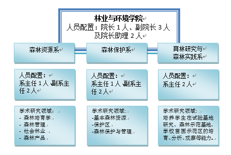 柬埔寨皇家农业大学成立于1964年,属政府公立学校,下设有林业与环境学院,由森林资源、森林保护、育林研究与森林实践三个系组成,该学院主要从事与林学学科相关专业的高级人才培养,可授予学士、硕士学位。学院现有在职教职员工28人,含院长1人、副院长3人、院长助理2人、系主任4人、副系主任4人、讲师12人和助理讲师2人,该学院机构设置以及学术研究领域见图13(图5)。