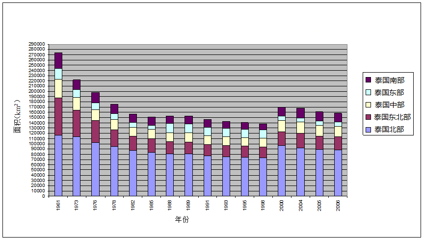 图1 1969-2006年泰国森林变化