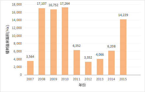 图2 2007-2015年泰国植树造林面积