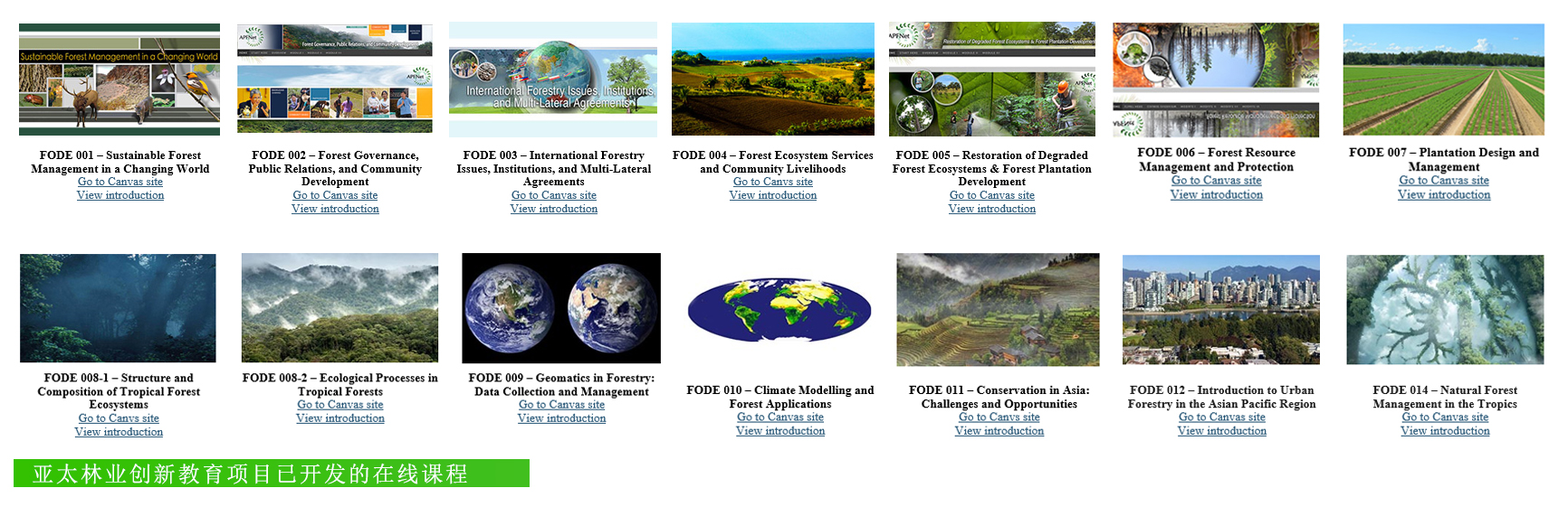 项目课程网站:http://apfecm.forestry.ubc.ca/sfm-online-courses/