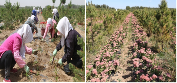 为使大中亚项目可持续经营发展,发展林下经济,提高经济效益,为大中亚荒漠化地区提供林下种植典型模式,开展林下种植药材和花卉,形成一套成熟的沙地林下种植技术和典型模式。项目建成林下经济种植试验面积40亩,其中种植甘草20亩,种植宿根花卉20亩,包括红花景天5亩,卧茎景天5亩,红花萱草5亩,金娃娃萱草5亩。